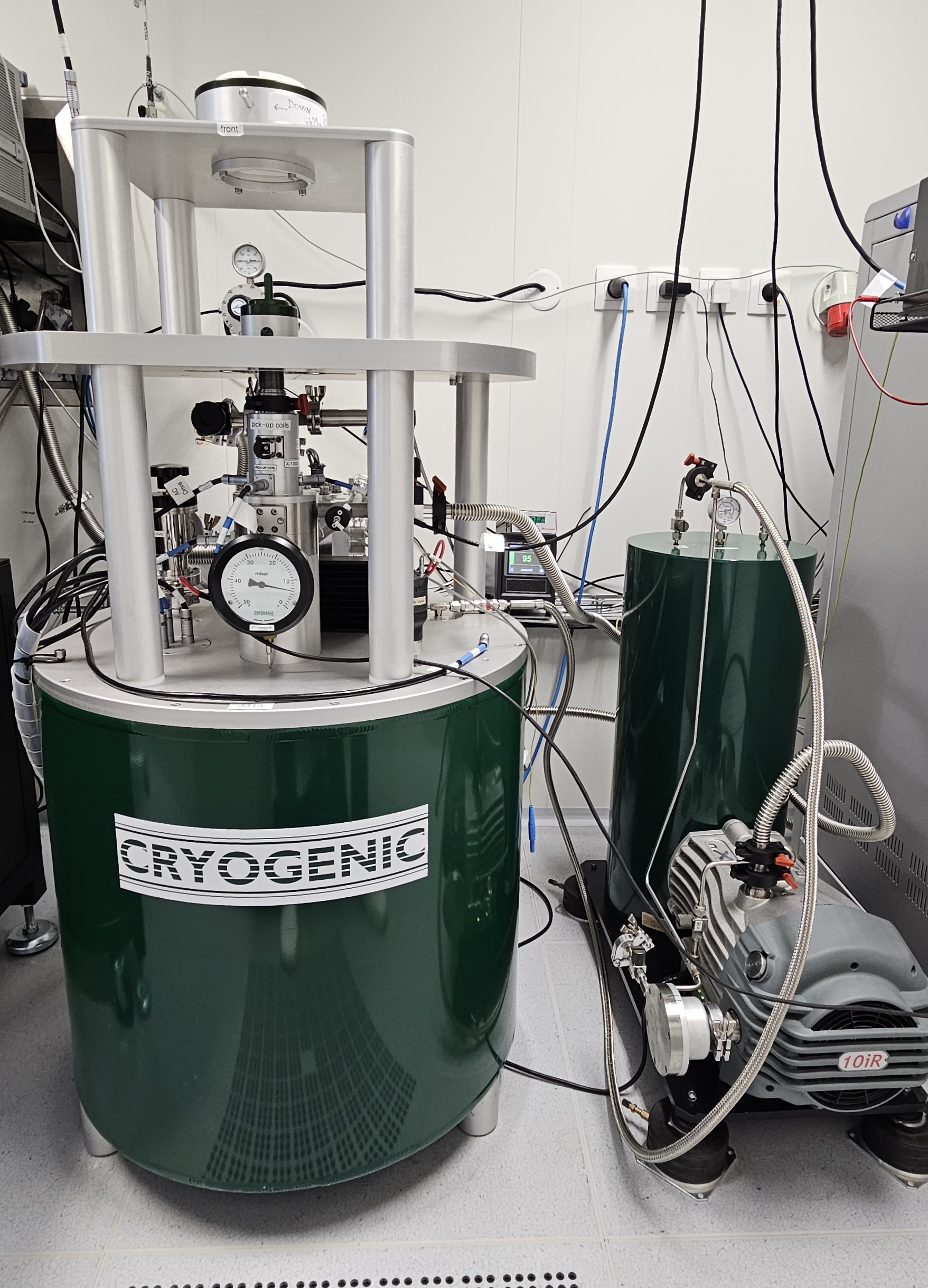 This cryogen-free magnet system (CRYOGENIC), suitable for measuring both electrical and magnetic properties of samples, allows the experimenter to achieve low temperatures 1.6K up to 400K while applying magnetic fields up to 9T to their samples. The Cryogen-Free High Field Measurement System combines the latest cryogen-free technology with sophisticated measurement techniques providing a versatile, powerful investigative device achieving low temperatures and high magnetic fields without the use of liquid helium or nitrogen. The cryocooler provides the cooling to both the magnet and the variable temperature insert (VTI). Available for these fields and temperature ranges are the following measurement options: · DCR (direct current resistivity) · VSM (vibrating sample magnetometry) · ACS (alternative current susceptibility)