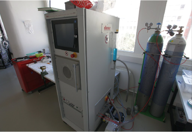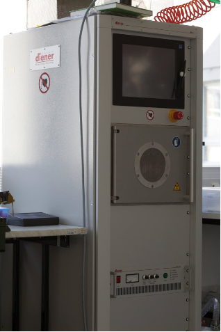 Diener NANO Plasma Cleaner with microwave generator can be used for stripping of the resist. Microwave plasma is ideal for most resist removal in modern device fabrication because it produces a very high concentration of chemically active species along with low energy ion bombardment. Therefore, it guarantees fast ash rate and a damage-free plasma cleaning. Microwave plasma systems are suitable for various substrate technologies like Si, III/V-compounds, quartz, ceramic, lithium niobate, copper interconnect devices etc. Oxygen plasma generates oxygen radicals and O2 ions. It is well suited for the removing of photoresist because oxygen radicals fast etch polymers and organics under formation of CO2 and water (ashing). The samples (max. size 8‘‘) can be heated (up to 100 C) by the chuck in order to ease the stripping of the photoresist. In biomedical applications, plasma cleaning is useful for achieving compatibility between synthetic biomaterials and natural tissues. Surface modification minimizes adverse reactions such as inflammation, infection, and thrombosis formation.
