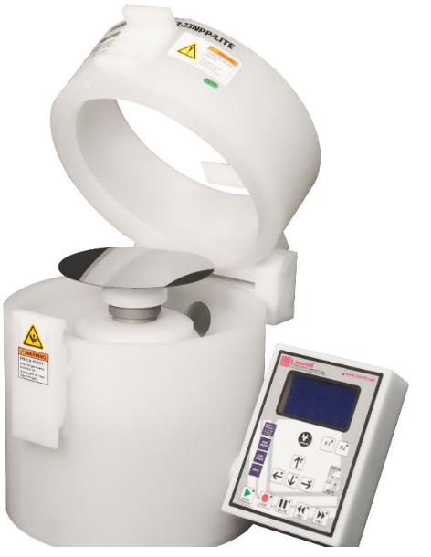 The Laurell WS-650-23 B spin coater is compact and packed with advanced features. This 650-series coater system will accommodate up to ø150mm wafers and 5" × 5" (127mm × 127mm) substrates, and features a maximum rotational speed of 12,000 RPM (based on a ø100mm silicon wafer).